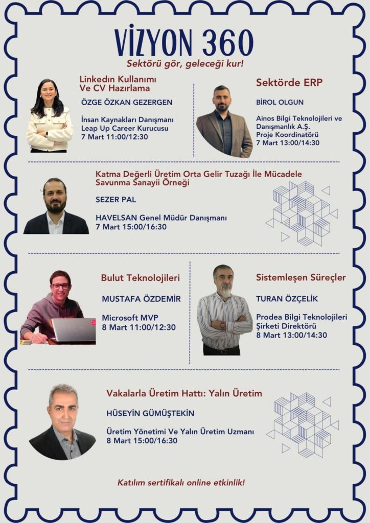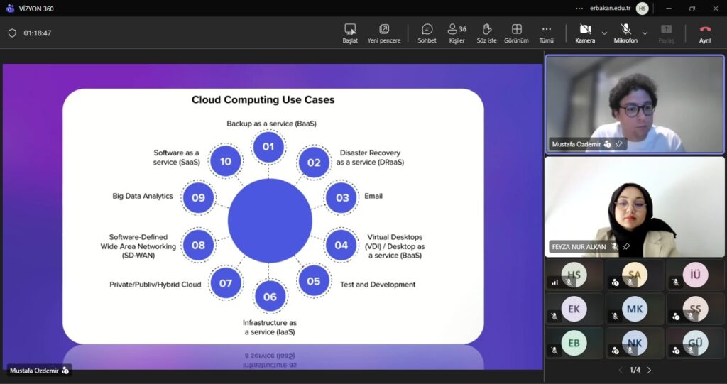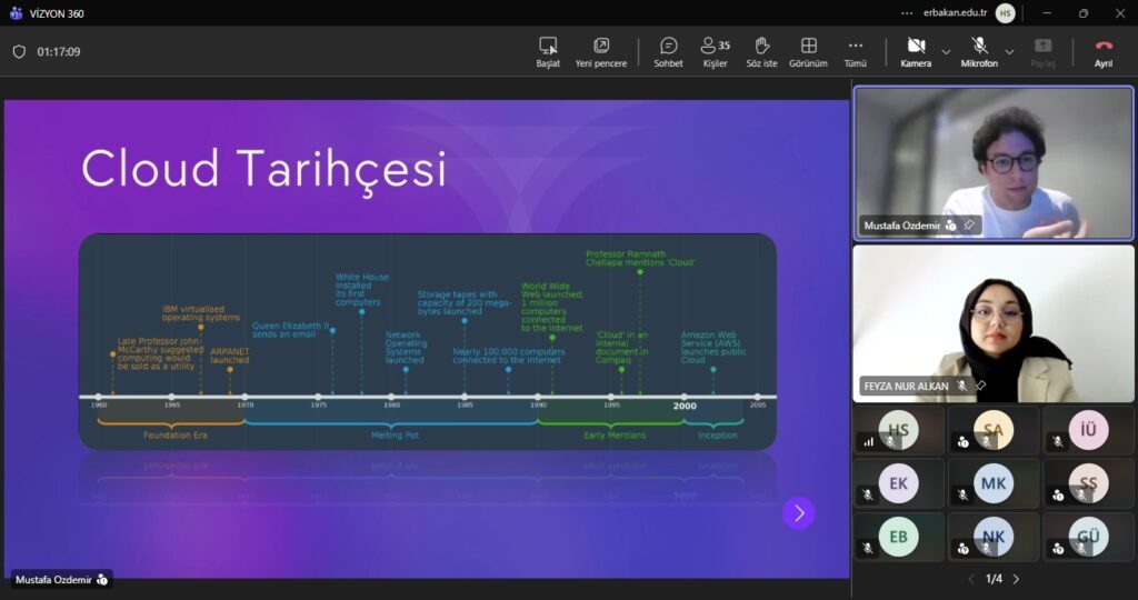 Necmettin Erbakan Üniversitesi Endüstri Mühendisliği Topluluğunun düzenlemiş olduğu Vizyon 360 etkinliğinde Bulut’un Temellerinden bahsettiğimizde etkinlikte Bulutun Temellerinden başlayarak , Bulut Mühendisliğinde Kariyer rotası konularını konuştuk.